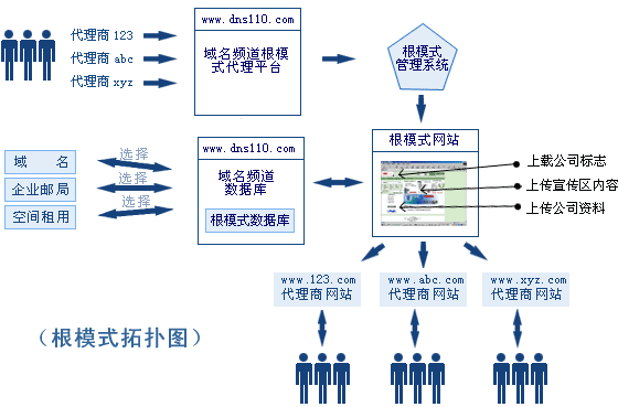 域名頻道根模式給您一個免費且又全自動的銷售系統的網站。 根模式是一種共享系統租用。各個系統之間是完全獨立的,互不干涉。您通過上傳自己的網站的Logo,并修改相關網頁上的文字材料,同時設置好配置文件(config.asp),就可以發布自己的根模式網站。而后您做好域名解析工作,這個根模式網站就可以供人訪問了。網站發布后,該代理商的下屬客戶就可以通過注冊獲得用戶名,并可以登陸到用戶中心購買產品或者管理業務。您的用戶名登陸根模式網站后,獲得最高管理權限,可以對下屬客戶進行一切管理。 包括下列模塊:1.系統用戶管理;2.代理商管理 3.直接用戶管理;4.產品管理; 5.財務管理; 6.訂單管理; 7.業務管理;8.事務服務。