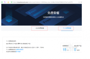 (這是騰訊云官網鏈接,請放心),進入之后我們可以看到騰訊云跟阿里云一樣,免費套餐也是分為個人版和企業版。