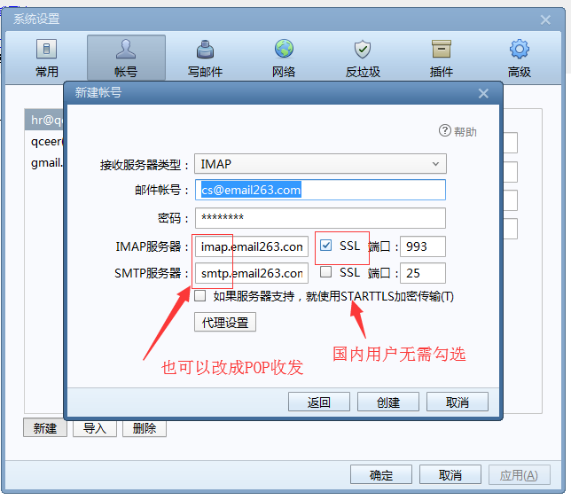 關于軟件賬號設置如圖(以FOXMAIL為例):