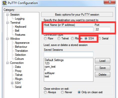 1、下載遠程鏈接軟件Putty,打開Putty客戶端,在PuTTY Configuration 窗口中輸入以下內容:
