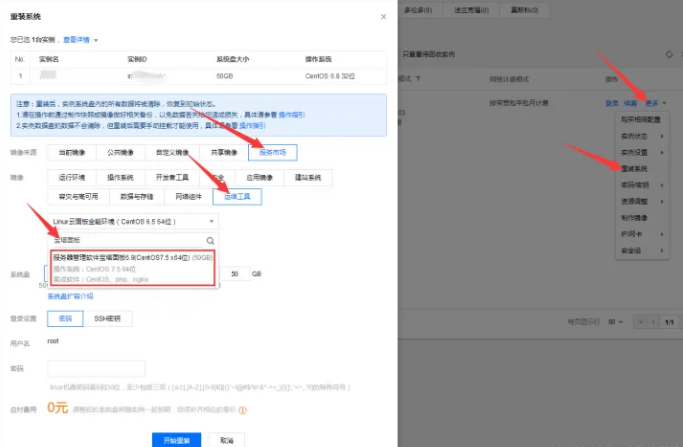 買好服務器后,開始安裝面板。點擊服務器列表的【更多】》重裝系統。
